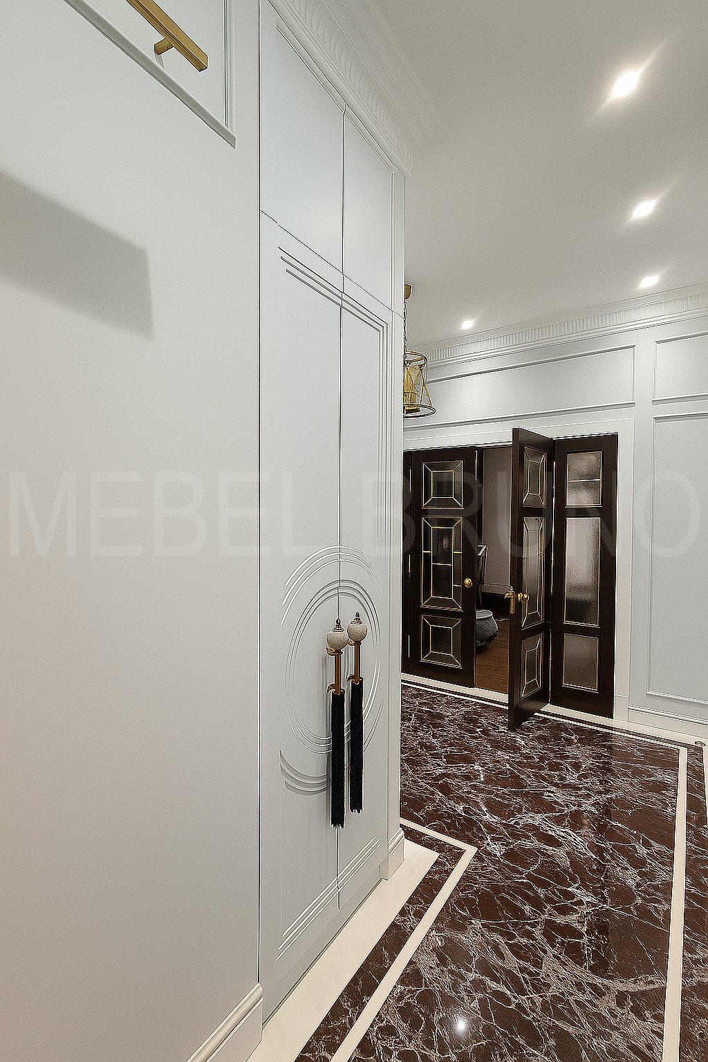 Прихожая задаёт первое впечатление — поэтому здесь важны и стиль, и порядок. Мы сделали встроенный шкаф в светлой эмали так, чтобы он выглядел как часть архитектуры: ровные линии, аккуратная фрезеровка и латунные детали добавляют “дорогой” характер. Крючки и функциональные секции помогают держать вс...