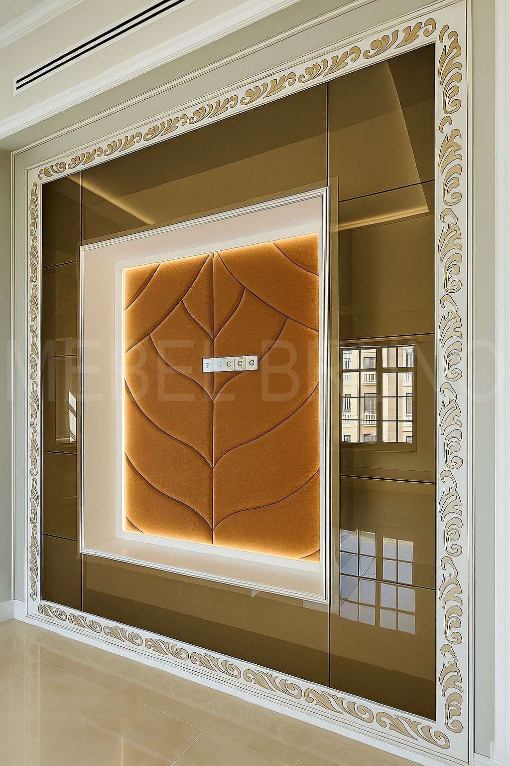 Этот проект — настоящий “вау-акцент” для интерьера. Зеркальные панели визуально расширяют пространство, мягкая 3D-вставка добавляет объём и тактильность, а встроенная подсветка создаёт тёплый вечерний свет без лишних светильников. Резной багет с золотыми акцентами завершает композицию и делает её по...
