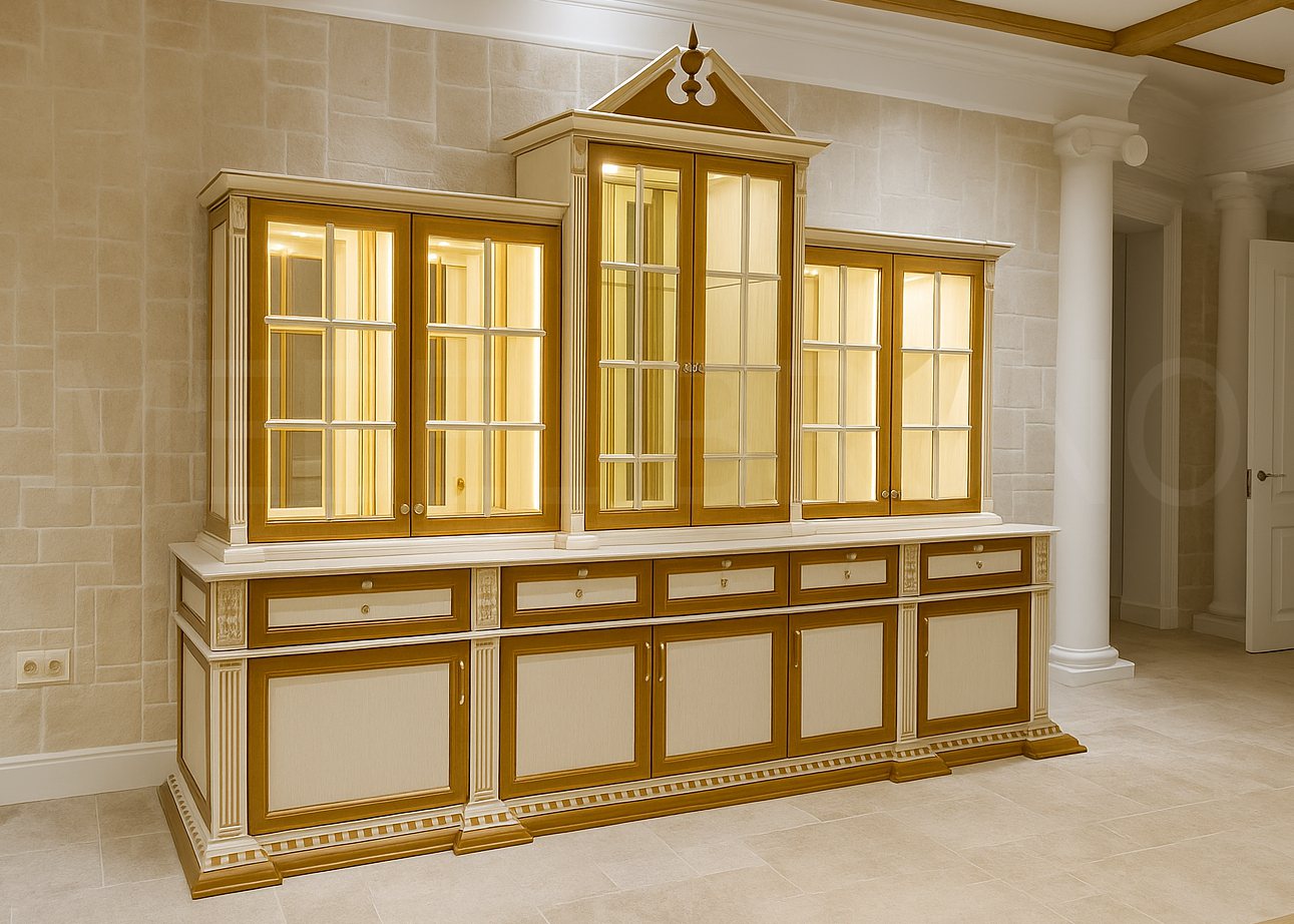Этот буфет-витрина создан для тех, кто любит порядок и красивые детали. Витринные секции со стеклом и подсветкой превращают посуду и коллекции в часть декора, а нижние модули берут на себя всё хранение “без лишнего на виду”. Классические пропорции, аккуратный декор и тёплый свет делают композицию по...